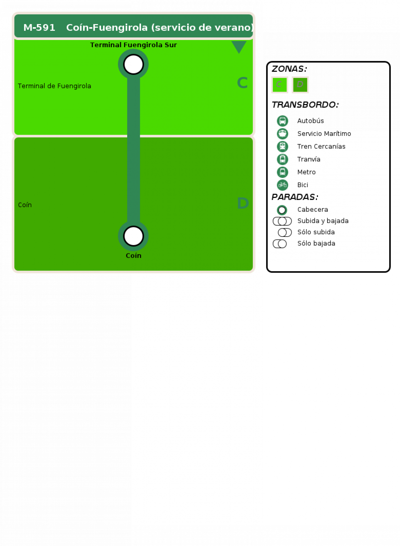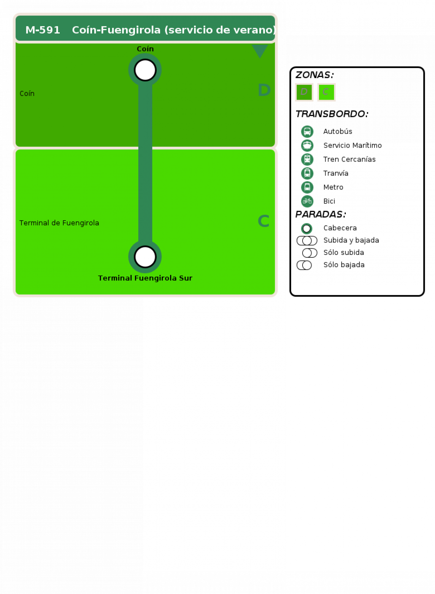 Información sobre horarios, esquema de paradas y recorrido de Línea M-591: Coín - Fuengirola de Autobuses interurbanos de Málaga.